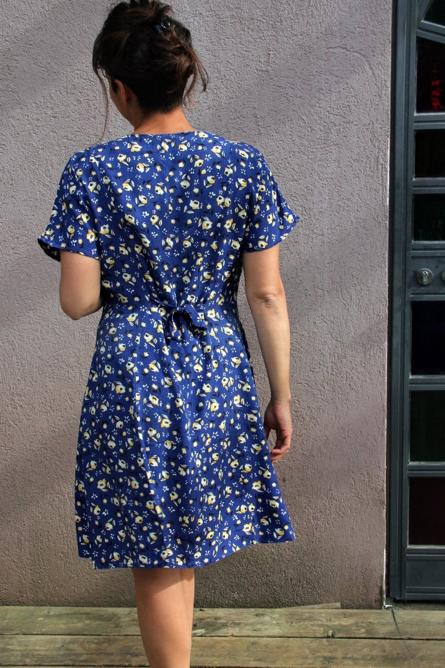 שמלת ניינטיז פרחים על רקע כחול מידה M/L